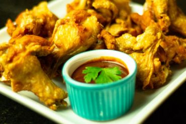 Coxinha da asa frita com molho barbecue.