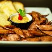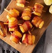 Medalhão de aipim cremoso com bacon.